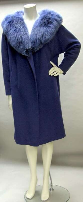Cobalt blue fox collar clutch coat 1980s
