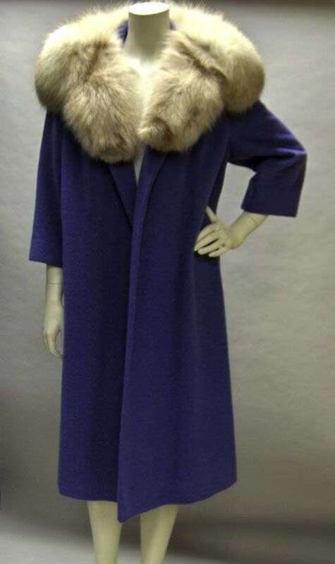 Periwinkle wool fox collar swing clutch coat 1960s