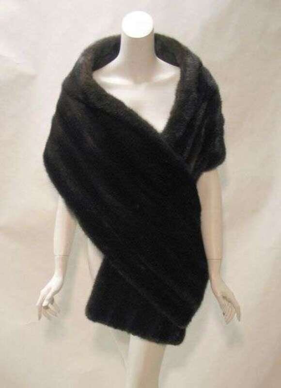Long rectangular stole in dark mahogany mink, 78" in length.