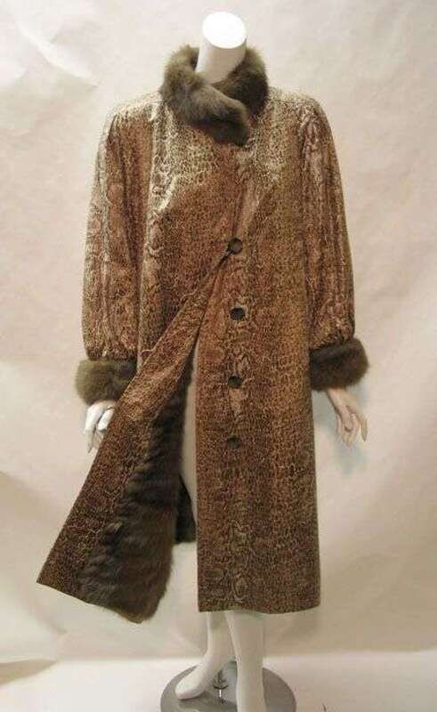 Winter ermine fur-lined snake-print coat 1980s