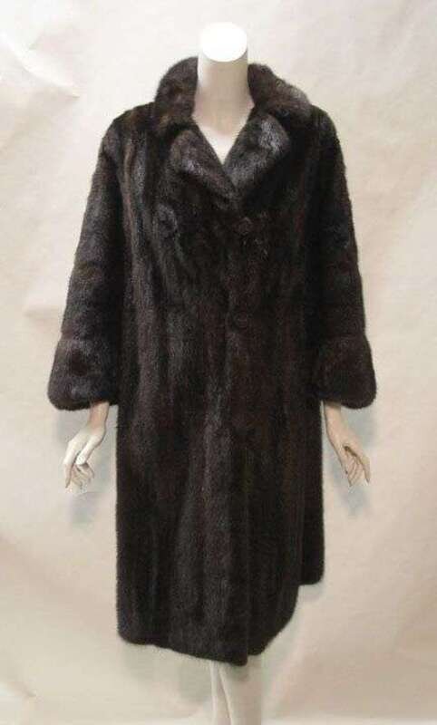 From Jurnovy's Furs, three-quarter length with a notch collar and button closures, wide slightly belled sleeves, jacquard lining.