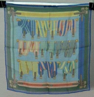 Depicting brightly colored saddle girths hanging on wooden racks.