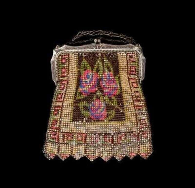 Art Deco Whiting and Davis enameled metal mesh purse 1920s