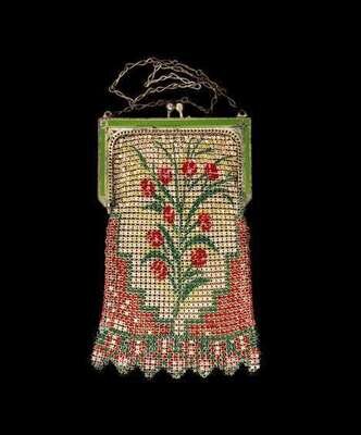Art Deco Whiting and Davis enameled metal mesh purse 1920s