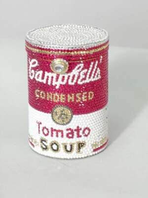 Designed as an exact replica of a can of Tomato soup, with a drop-in chain strap.
