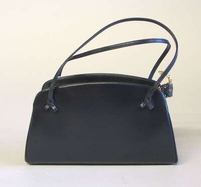 Small structured trapezoidal shape with two thin handles and a jeweled "rams-head" latch at one end.