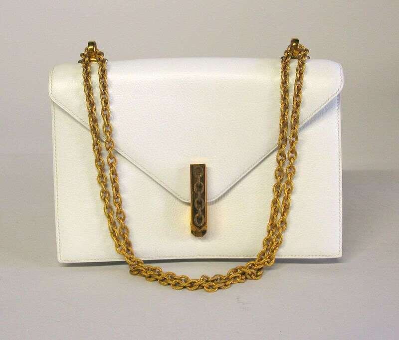 Hermes white leather chain-link detail envelope purse 1990s