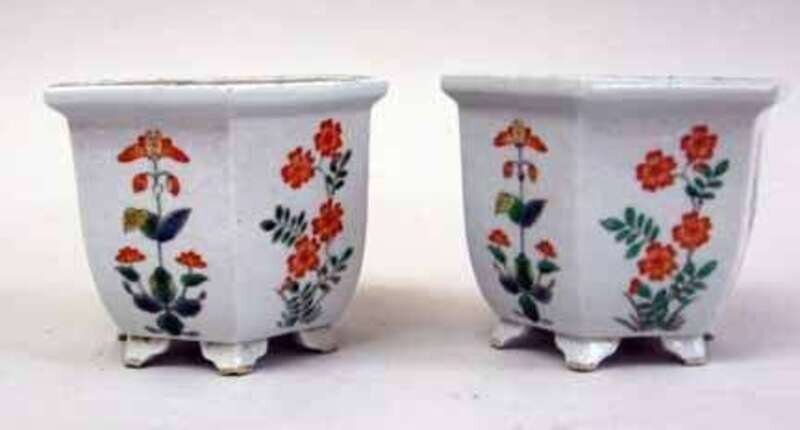 Of hexagonal form, enameled with floral sprays over bracket feet.