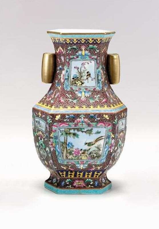 Chinese ruby red ground enameled porcelain vase 20th century