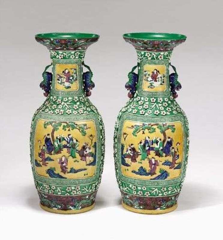 Pair of Chinese porcelain famille verte vases late 19th early 20th century