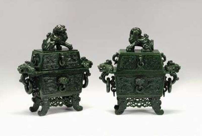 Pair of Chinese archaic form jade covered censers probably 20th century