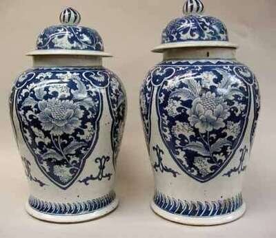 Pair of Chinese blue and white covered baluster jars 20th century