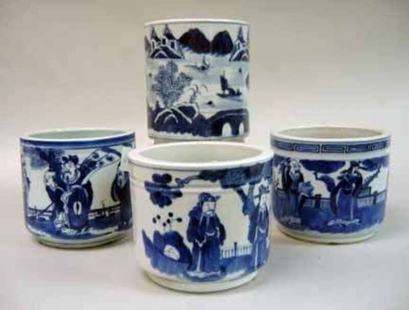 Three worked to show immortals in discussion, together with one decorated to show a fishing village.