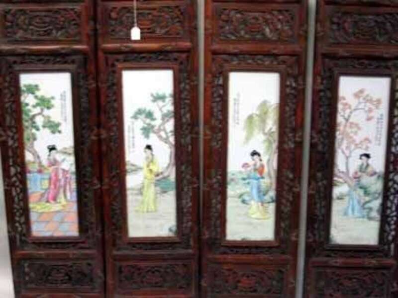 Four framed enameled porcelain panels 20th century