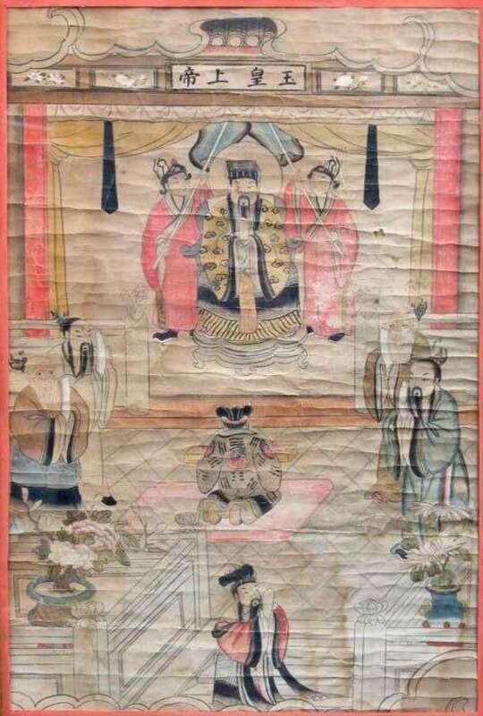 Both are framed and glazed, of ink, color and gilt depicting two court scenes.