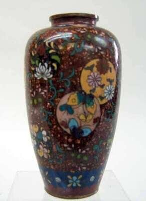 Of ovoid form, the body worked with lotus leaf scrolls, circular disks enclosing phoenix and floral sprays.