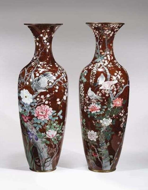 Impressive matched pair of Japanese Palace Cloisonne Vases. 19th century