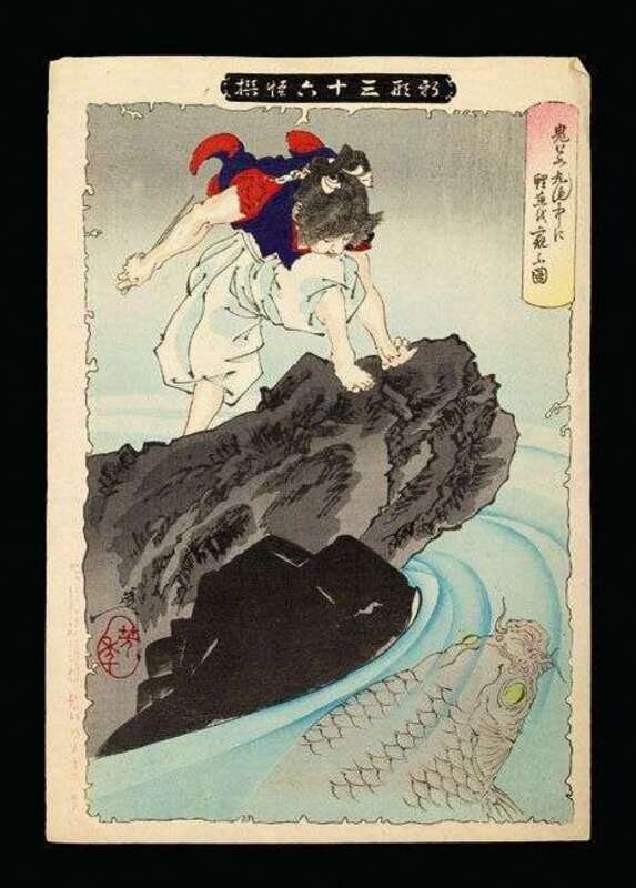 YOSHITOSHI TAISO (JAPANESE 1839-1892) ONIWAKAMARU OBSERVING THE GREAT CARPTIN THE PONDfrom NEW FORMS OF THIRTY-SIX GHOSTS