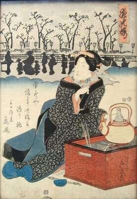EISEN IKEDA (JAPANESE 1790-1848) BIJIN AT EVENING BLOSSOM VIEWING