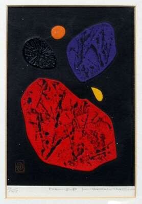 1971, pencil signed Haku Maki, titled, and numbered 39/201 in the margin; with artist's seal in the image. Color woodblock with embossing.