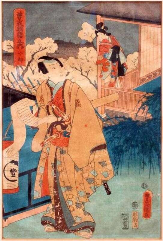 UTAGAWA KUNISADA (TOYOKUNI III) (JAPANESE 1786-1865) SAMURAI AND BIJIN