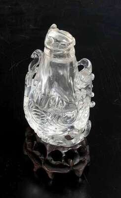The cover inscribed with archaic style motif, leading to two phoenix carved in high relief to the shoulder, with inscribed simulated feathers and tail to the body, over a pierced timber base.