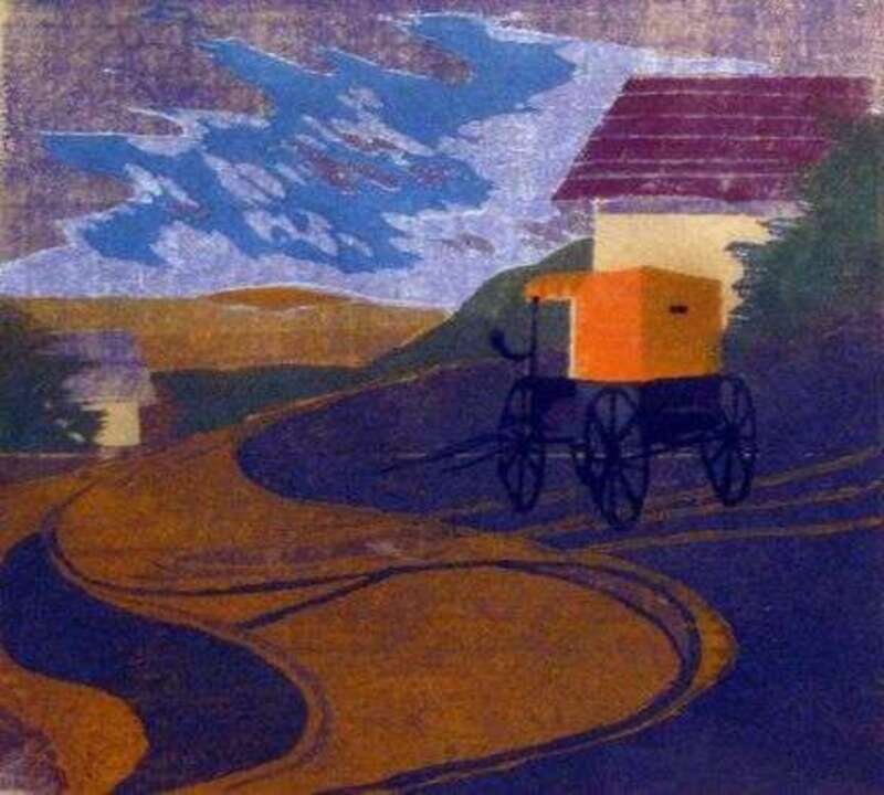AMERICAN SCHOOL (20TH CENTURY) "ORANGE AMISH BUGGY"