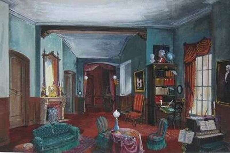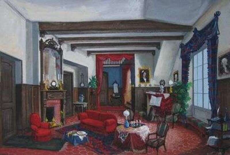 GEORGES WAKHEVITCH (FRENCH 1907-1984)THREE GOUACHES UNTITLED (PARLOR), UNTITLED (BOUDOIR), and UNTITLED (PARLOR WITH RED COUCH)