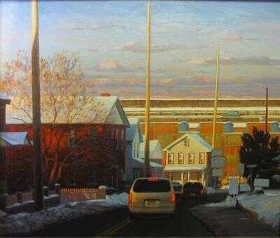 ROBERT HEILMAN (AMERICAN 20TH CENTURY) CITY SCENE AT DUSK