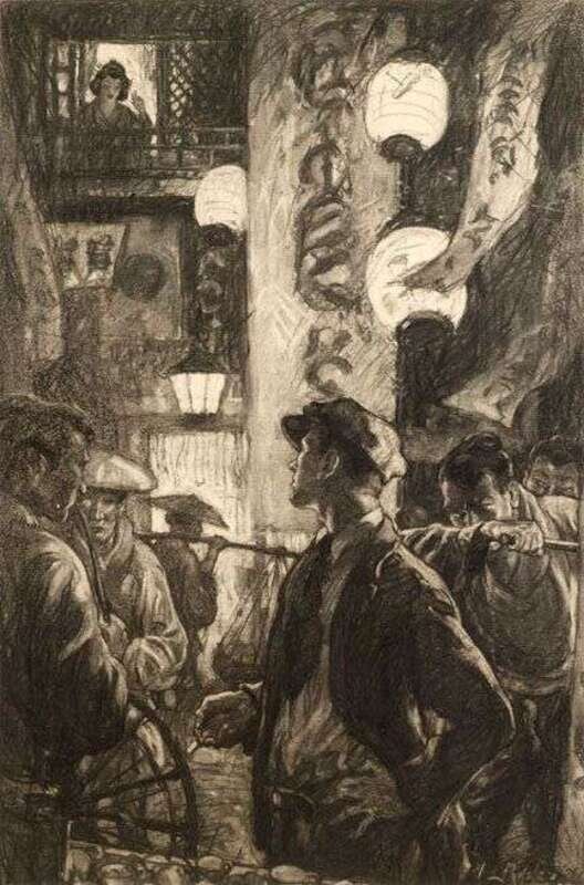 AIDEN LASSELL RIPLEY (AMERICAN 1896-1969) 'HE HAD TURNED UP HIS EYES TO A SLIDING WINDOW WHERE A JAPANESE GIRL LAUGHINGLY CALLED TO HIM'