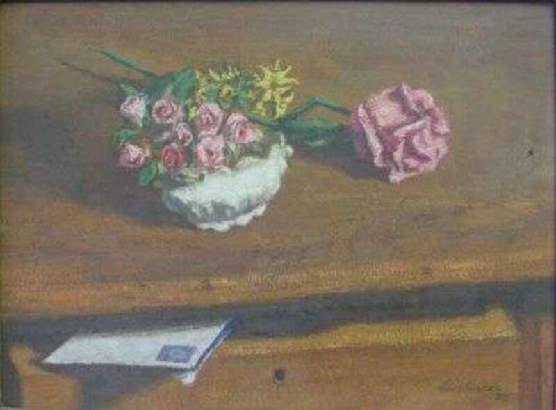 JACK BOOKBINDER (AMERICAN 1911-1993) STILL LIFE WITH ROSE AND LETTER