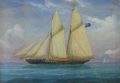 NEAPOLITAN SCHOOL (19TH-20TH CENTURY) A BRITISH MASTED SHIP IN THE BAY OF NAPLES, VESUVIUS ERUPTING IN THE DISTANCE