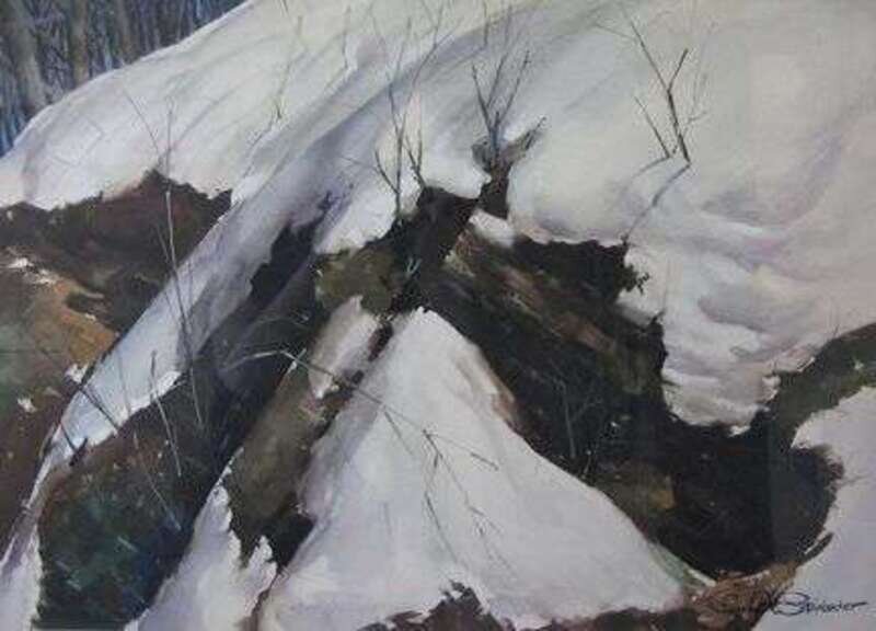 CHARLES H. STEINBACHER (AMERICAN 20TH CENTURY) "SNOW ON THE ROCKS"