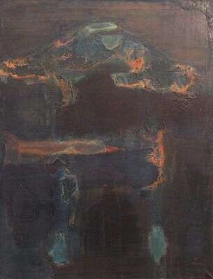 MINORU AGATA (JAPANESE B. 1936) FIGURES IN SURREAL LANDSCAPE