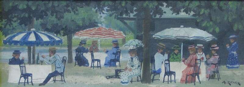 A. RENOUX (FRENCH B. 1939) "L'HEURE DU THE AU PAVILLON DU BOIS DE BOULAGRE A PARIS"