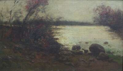 EDWARD GAY (IRISH/AMERICAN 1837-1928) LANDSCAPE WITH TREES AND WATER