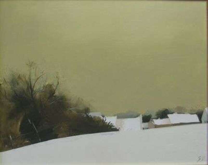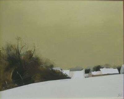 SERGE ZHUKOV (AMERICAN 20TH CENTURY) "HOUSES IN THE SNOW"
