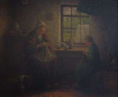 HANS EYBERGEN (DUTCH 19TH CENTURY) THE SEWING LESSON