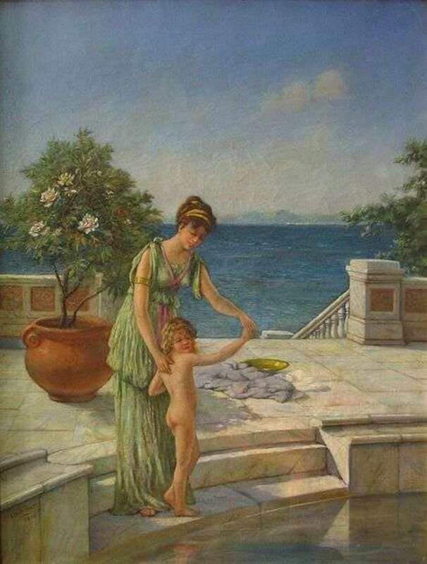 CLAUDE PRATT (BRITISH 1860-1935) CLASSICAL SCENE WITH MOTHER AND CHILD