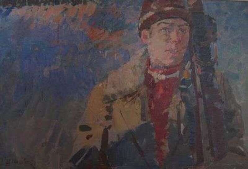T. CHEMNEK (RUSSIAN 20TH CENTURY) YOUNG MAN WITH SKIS