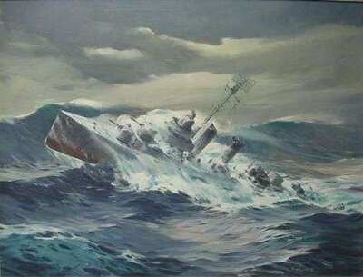 TORE ASPLUND (AMERICAN 1903-1978) BATTLESHIP IN HIGH SEAS
