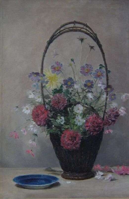 WILLIAM ROWELL DERRICK, A.N.A. (AMERICAN 1857-1941) "A BASKET OF FLOWERS"