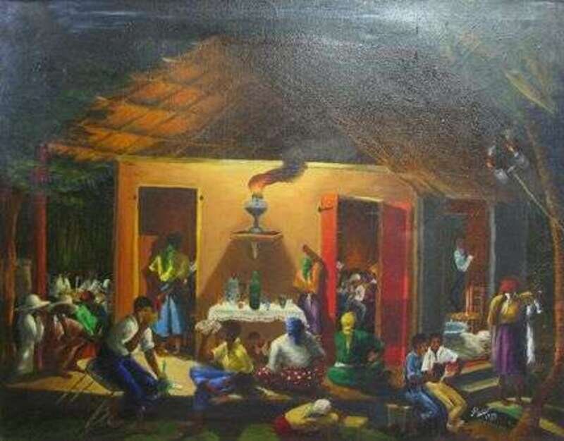 LOUVERTURE POISSON (HAITIAN SCHOOL 1914-1984) OUTDOOR GATHERING