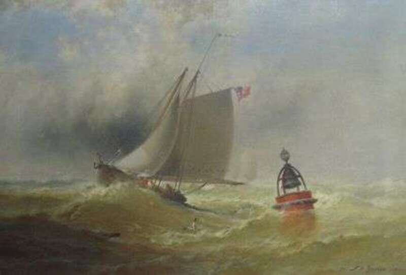 FRANKLIN DULLIN BRISCOE (AMERICAN 1844-1943) "SAILBOAT IN STORMY SEAS"