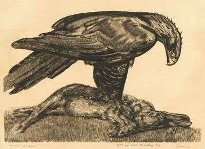 PAUL JOUVE (FRENCH 1880-1973) "AIGLE ET LIÈVRE"