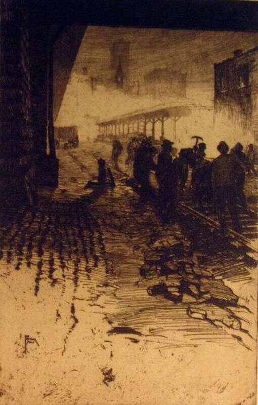 RALPH PEARSON (AMERICAN 1883-1958) "THE TRACK GANG" from under the 12th street viaduct-NYC #5 toilers of the city