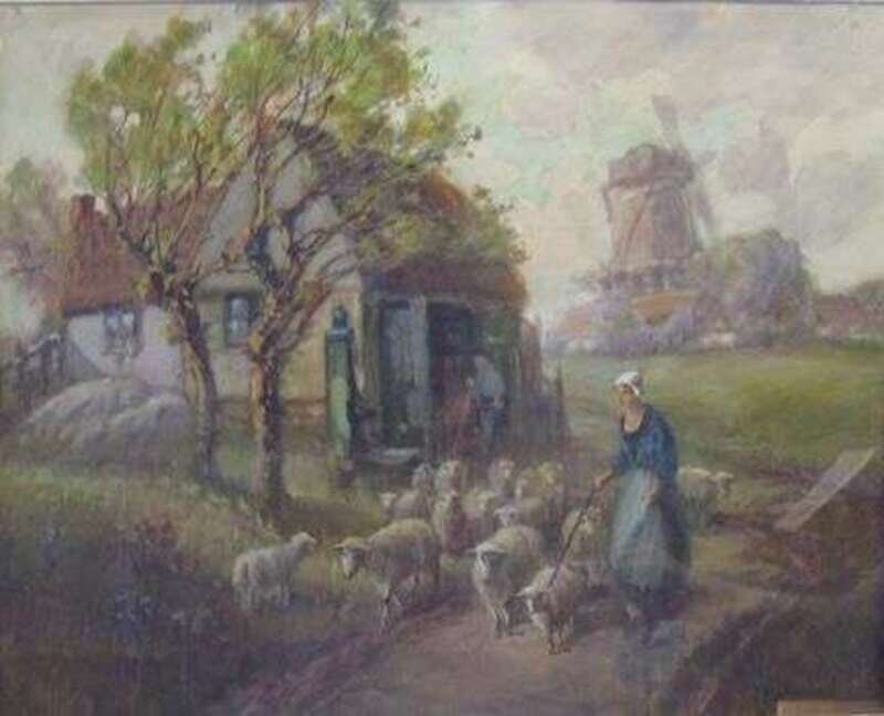 FRANCIS WILLIAM VAN VREELAND (DUTCH 1879-1954) SHEPHERDESS WITH FLOCK