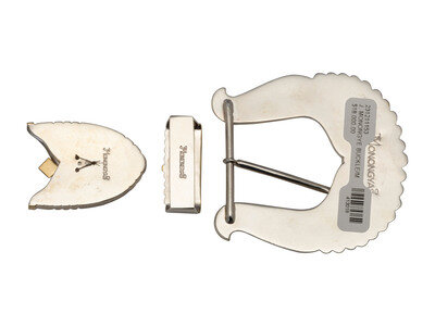 buckle height 3-1/4 inches x width 3 inches, belt width 1-1/2 inches, total combined weight 86.5 dwt.