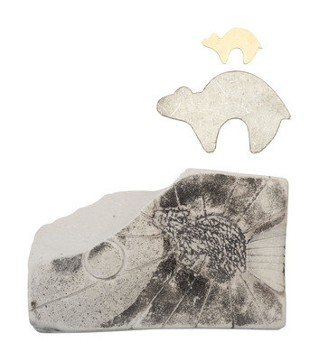 Bear Tufa Cast Mold, and Pair of Silver and Gold Bear Preforms