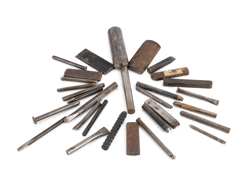 Collection of Jesse Monongya's Personal Silver Stamps and Hand Tools